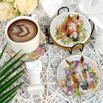 8 pieces/set of horse patterned diamond painted coasters set, sparkling rhinestone heat-resistant beverage mat with holder DIY c
