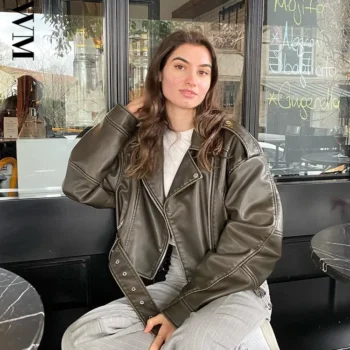 Upgrade your streetwear style with this TRAF Women Oversized Vintage PU Faux Leather Jacket. Designed with a loose fit, belted waist, and retro moto biker vibes, this short coat is perfect for layering in all seasons. The high-quality faux leather and zipper detailing make it a must-have statement piece for women who love bold, trendy, and timeless fashion.